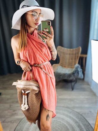 Nagyon jó minőségű, és kellemes anyagból készült női sál, amely ideális kiegészítőként szolgál a nyári napokon. Nagy előnye, hogy többféle módon is viselheted, így igazán nem fog a szekrényben állni. Viselheted sálként, vállon hordva egy ruhához, illetve a strandon kaftánként is nagyon jól áll a főrdöruhán.