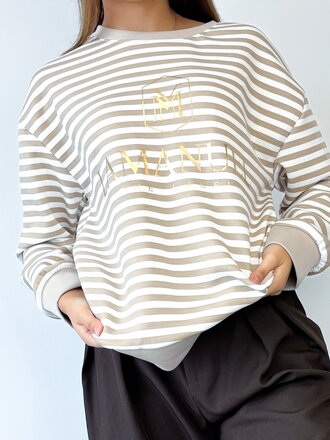 Dámska pruhovaná mikina v béžovo-bielej kombinácií